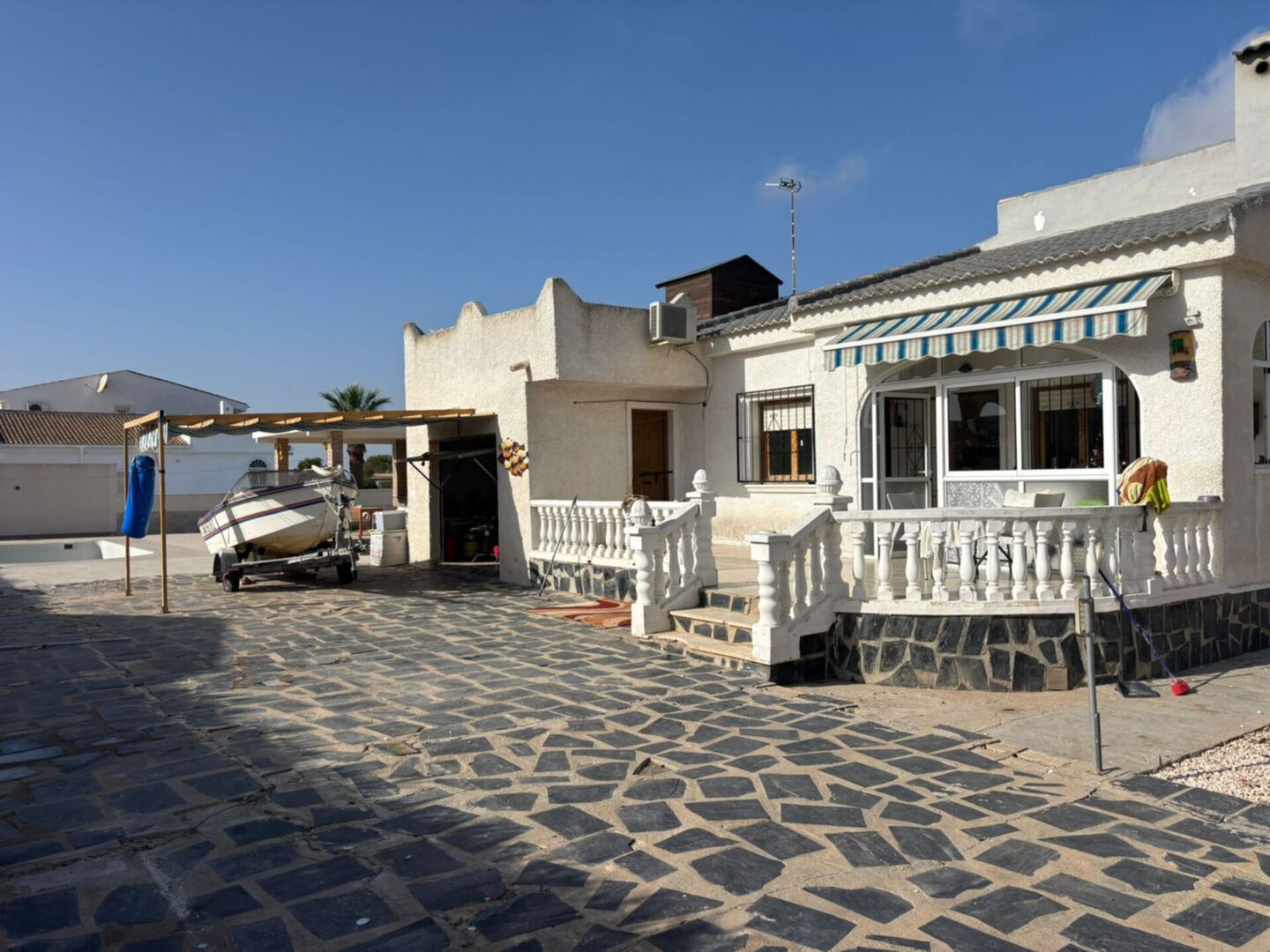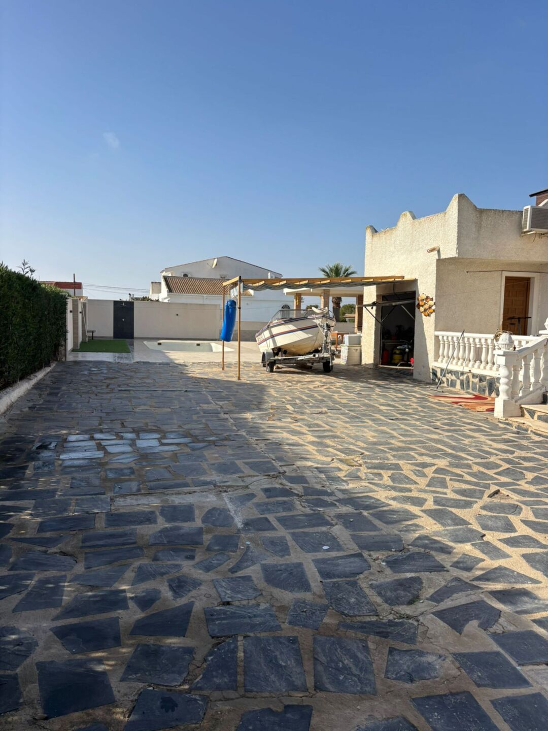 This detached villa is located on a large plot of 1,000 m² where every corner invites you to imagine unique moments From the very first moment, you will be greeted by a large garden and a brand new swimming pool, ideal for cooling off and enjoying the sunny days. Next to the pool, you will find a spectacular newly built gazebo, with barbecue included, perfect for gathering family and friends for long evenings outdoors. The house, on the ground floor, combines comfort and warmth. Upon entering, you are greeted by a bright living room with open-plan kitchen, two bedrooms and a functional bathroom. Outside, a staircase leads to the private solarium, with stunning views of the unique Laguna Rosa, a natural environment that will make every sunset unforgettable.. The plot also offers great potential to design new rooms or garden areas according to your tastes and needs. Looking for something else? This villa gives you the possibility to build a first floor, further expanding the space and potential of the property. Whether you want to create your ideal home or take advantage of this opportunity as an investment. IBI rate: 270€ per year and no community fees.