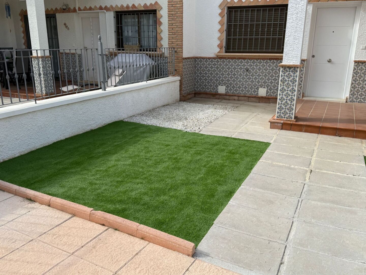 Entra en esta encantadora vivienda de dos plantas, totalmente reformada, y prepárate para ser cautivado! Con una espaciosa superficie útil de 82 m² (102 m² construidos), esta propiedad ofrece confort y estilo en su diseño cuidadosamente pensado. Imagina tomar el sol mediterráneo en tu solárium privado o disfrutar de un café tranquilo por la mañana en el acogedor porche. El amplio jardín delantero de 82 m² proporciona un delicioso oasis al aire libre para relajarse, entretenerse o incluso para un poco de jardinería. En el interior, encontrarás un salón-comedor diseñado, una cocina moderna, tres acogedoras habitaciones y tres elegantes baños completamente reformados. Cada detalle ha sido meticulosamente actualizado, asegurando una experiencia contemporánea y lista para entrar a vivir. La practicidad se une a la comodidad con un trastero grande y un garaje privado. Además, tendrás acceso a una refrescante piscina comunitaria, perfecta para esos cálidos días españoles. Todo esto está ubicado en una zona privilegiada de San Miguel de Salinas, cerca de todos los servicios esenciales.
