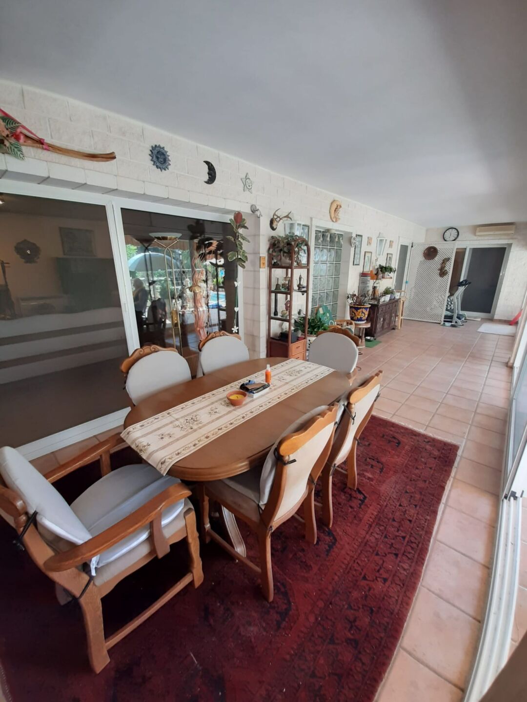 La vivienda te recibe con un espectacular porche acristalado que bordea la propiedad, fusionando el interior con la exuberante piscina y el cuidado jardín, bañando cada estancia con una luz natural inigualable.